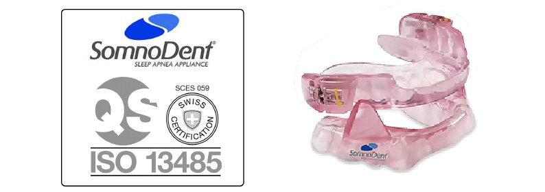 L’apparecchio orale SomnoDent® è un dispositivo costruito su misura di avanzamento della mandibola per il trattamento dell’apnea del sonno di grado da lieve a moderato, che previene le interruzioni della respirazione. È costituito da due placche, una superiore e una inferiore, unite da un esclusivo componente brevettato a forma di ala che permette di aprire e chiudere normalmente la bocca.